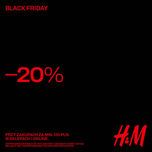 Black Friday trwa! Odwiedź sklep H&M i kup swoje ulubione produkty z rabatem 20%.