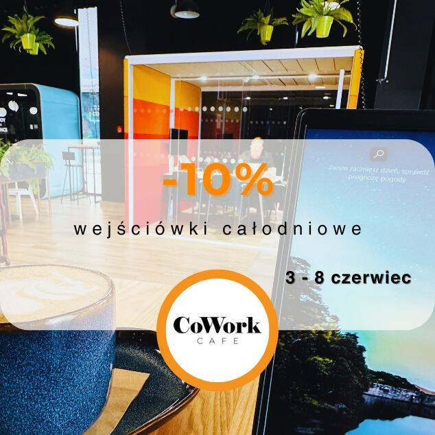 CoWork Cafe to coś więcej niż zwykła przestrzeń coworkingowa. Przekonaj się sam - tym bardziej, że w tym tygodniu wejściówki całodniowe odbierzesz z rabatem - 10%.