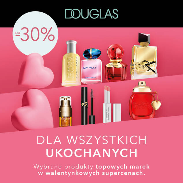 Walentynkowe love? Celebruj je z nami oraz rabatem do 30% na wybrane produkty topowych marek. Zapachy dla ukochanych i inne produkty w super cenach, czekają na Ciebie w naszych perfumeriach i na douglas.pl.