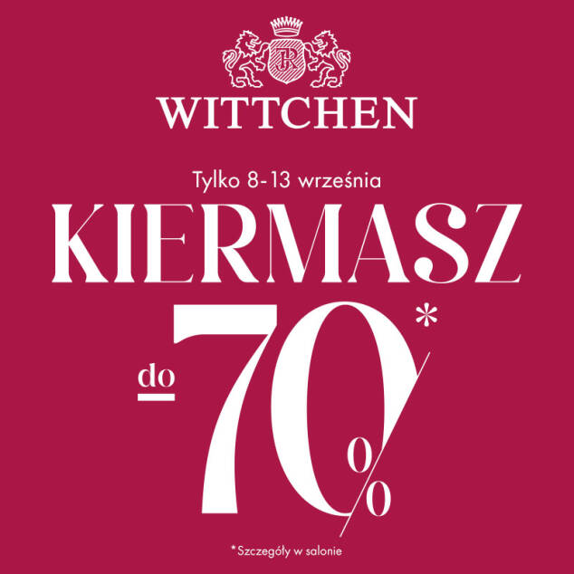 Ruszył JESIENNY KIERMASZ! Odśwież garderobę z rabatami do 70% na jesiennym kiermaszu WITTCHEN! Torebki, buty, odzież, dodatki i walizki w super cenach czekają na Ciebie na jesiennym kiermaszu. Tylko od 8 do 13 września.