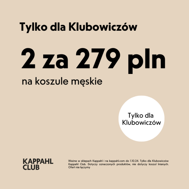 Ważne w sklepach Kappahl i na kappahl.com do 1.10.24. Tylko dla Klubowiczów Kappahl Club. Dotyczy oznaczonych produktów, nie dotyczy koszul lnianych. Ofert nie łączymy