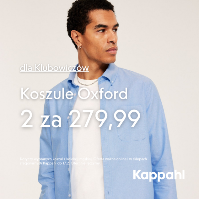 Dotyczy wybranych koszul z kolekcji męskiej. Oferta ważna online i w sklepach stacjonarnych Kappahl do 17.2 dla nowych i obecnych Klubowiczów. Ofert nie łączymy.