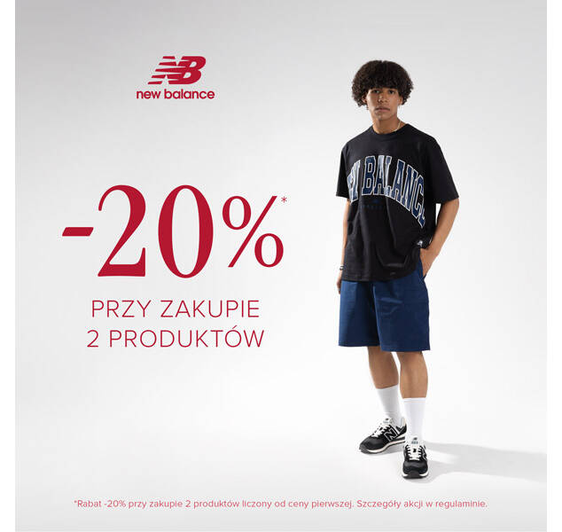 -20% na Nową Kolekcję w sklepie New Balance. Rabat przy zakupie 2 produktów. Akcja w dniach 29-30.09. Zapraszamy!