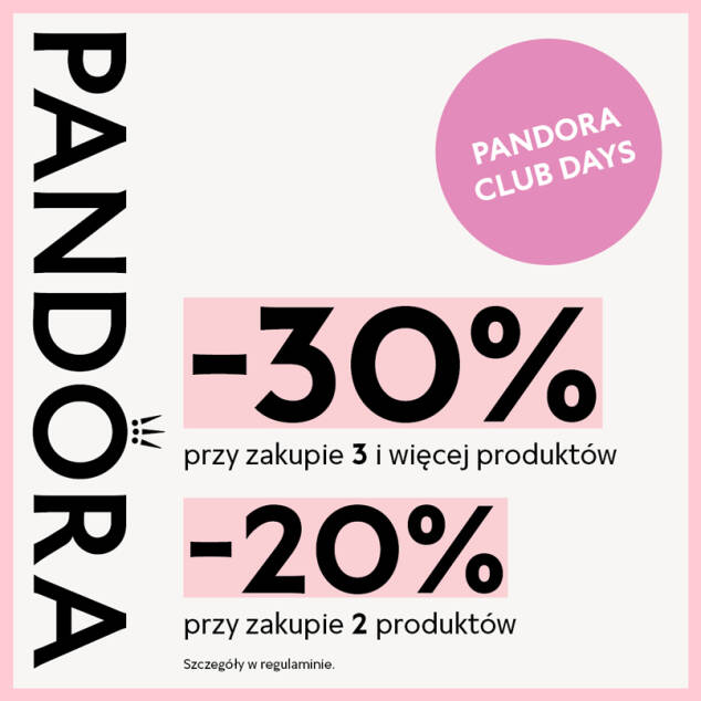 · dwóch produktów z oferty PANDORA, otrzyma rabat w wysokości 20% na dany zakup*,