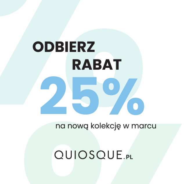 Jeszcze tylko do 8.03 zrób zakupy za dowolną kwotę i odbierz kupon rabatowy na 25% na nową kolekcję do wykorzystania do końca marca. Do zobaczenia w Quiosque.pl!