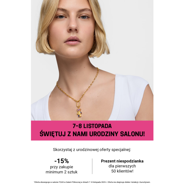 Zapraszamy do wspólnego świętowania urodzin salonu TOUS Galeria Północna 7–8 listopada 2025 r.