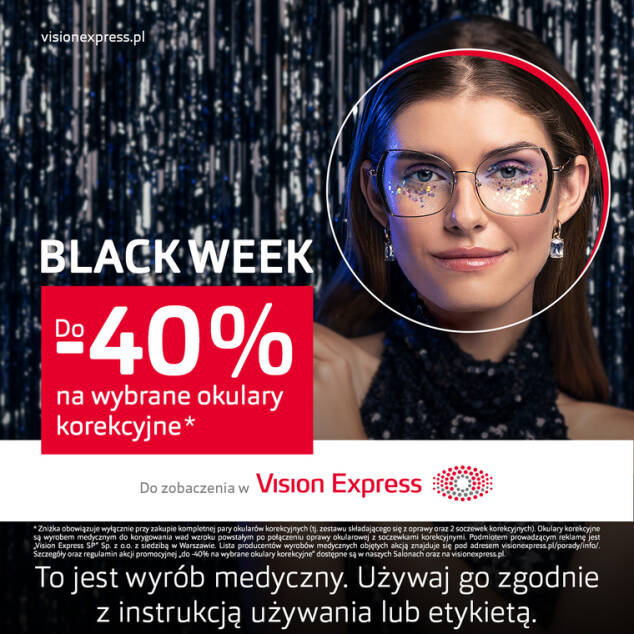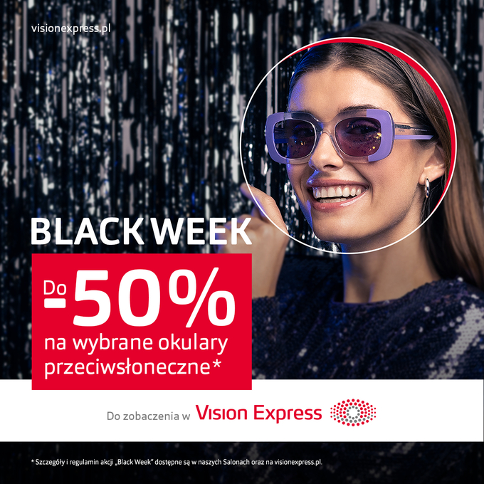 **Szczegóły i regulamin akcji,,Black Week" dostępne są w naszych Salonach oraz na visionexpress.pl.