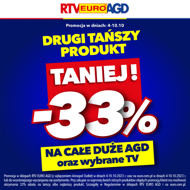 W RTV EURO AGD drugi tańszy produkt 33% TANIEJ!