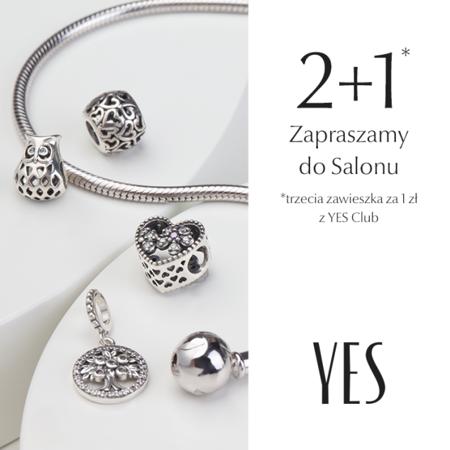 Tylko do 31 grudnia w YES Club skorzystasz z wyjątkowej oferty 2+1! Kup dwie dowolne zawieszki, a trzecią otrzymasz za 1 zł.