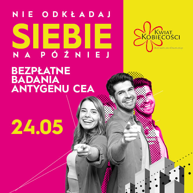 Wspólnie z Fundacją Kwiat Kobiecości zapraszamy do udziału w wyjątkowej akcji profilaktycznej, podczas której wykonanych zostanie 200 bezpłatnych badań krwi na poziom markera nowotworowego CEA (antygen rakowo-płodowy). To szybkie i nieinwazyjne badanie, które może odegrać kluczową rolę we wczesnym wykrywaniu nowotworów, zwłaszcza jelita grubego, trzustki, płuc, żołądka czy piersi.