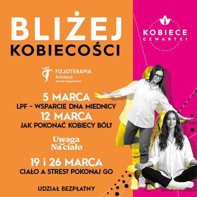 Spotkanie poruszy temat bólu, który często bywa bagatelizowany. Uczestniczki poznają możliwe przyczyny dolegliwości oraz nauczą się prostych technik wspierających ciało i dowiedzą się, kiedy warto zgłosić się po specjalistyczną pomoc.