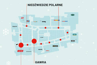 Na pasażu Północnej natkniecie się też na misiową mamę pochrapującą w gawrze wraz z misiami-brzdącami, grzybowy domek z pierniczkami i Inuitów wyruszających w drogę na psich zaprzęgach. A to nie wszystko! Sprawdźcie na mapkach, gdzie można zobaczyć kolejne zimowe ozdoby.